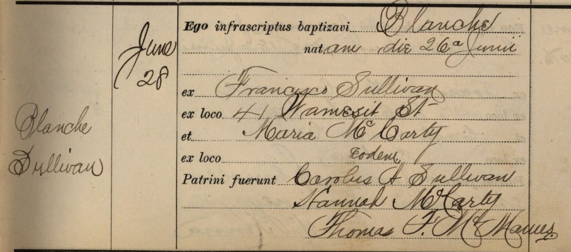 Her full name is Marie Theona Cordelia Vilandre. Her mother’s last name appears to be Franche or Fraiche?