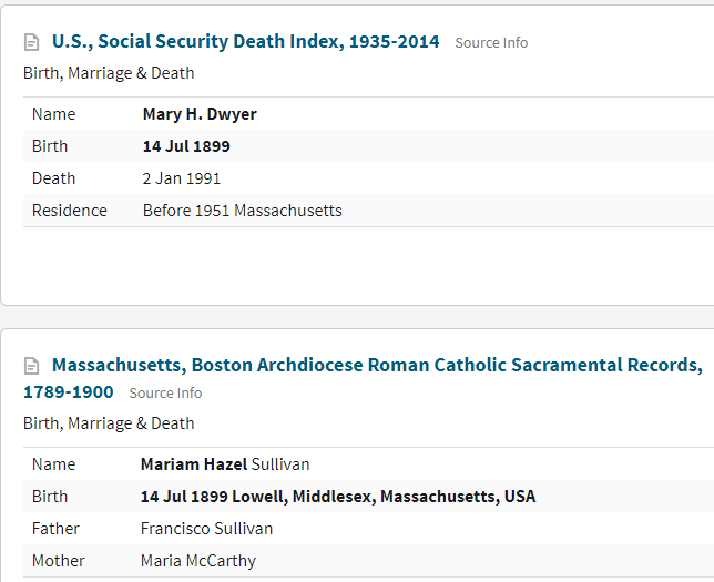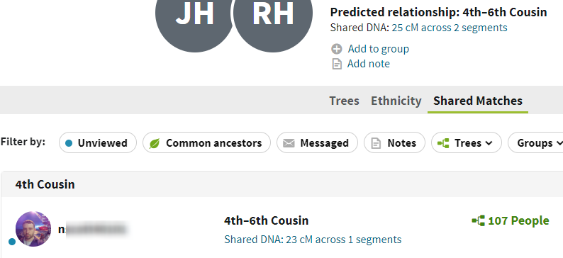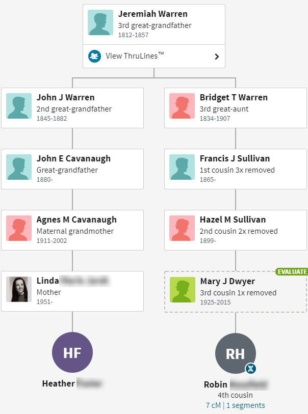 Heather seems to have more of the French Canadian matches. Here is one of Heather’s first French Canadian ThruLines: