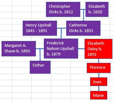 Again, Esther will represent Upshall and not Daley. That is because Elizabeth died in the flu epidemic. Fred Upshall remarried a Shave and had Esther.