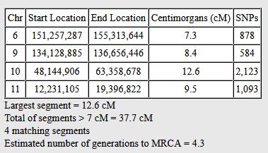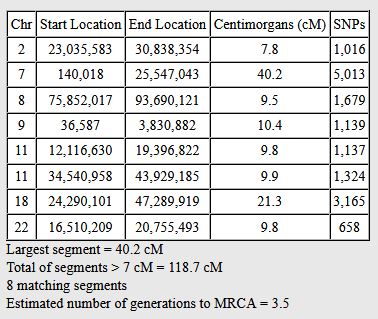 - One I could have noted before. Betwen 17 to 26.6M Elaine and Join do not match each other. Elaine has Upshall DNA there, so Joan has to have Daley there.
