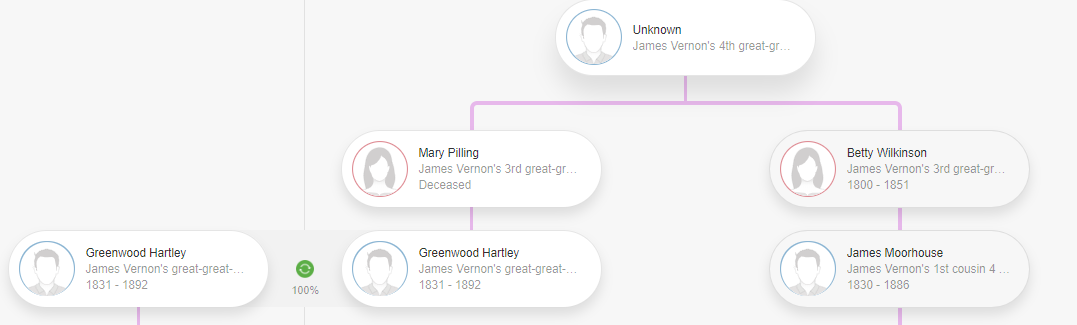 Wallace accounts for some of the Esther’s green DNA above which represents DNA from either Henry Upshall or Catherine Dicks. The above map shows Esther’s paternal side which is 50% mapped.
