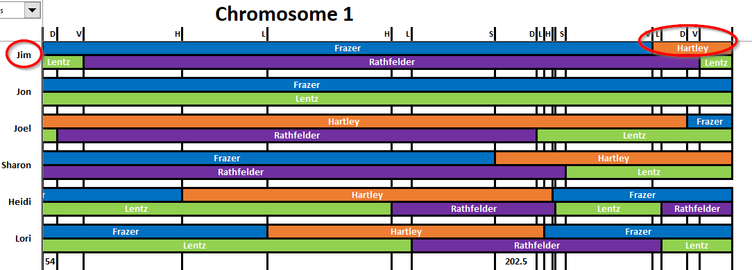 Josiah has a similar issue with Violet, but on a different segment of Chromosome 1: