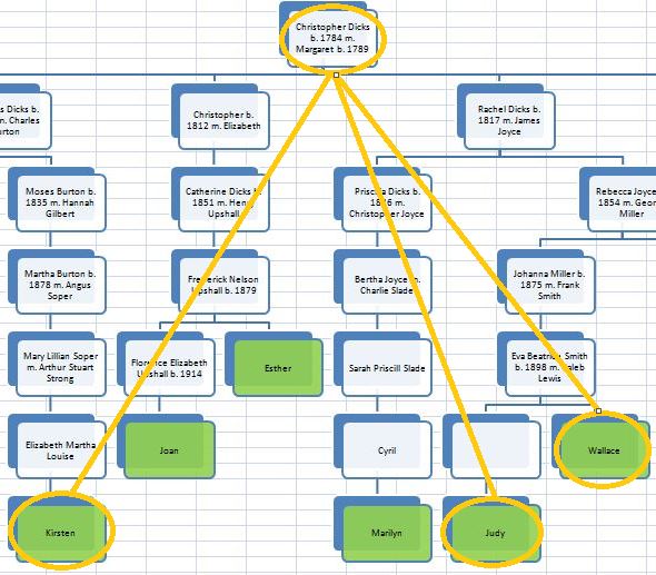 Kirsten matches Christopher Dicks descendants 9 times. She matches: