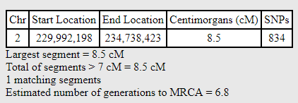 I have Jane’s Chromosome 2 above where she matches Beckham between 225 and 230 on her paternal side.