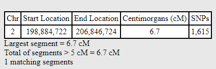 Two siblings match Hillock and one does not. However, in this case, the two siblings match at different locations on Chromosome 2.