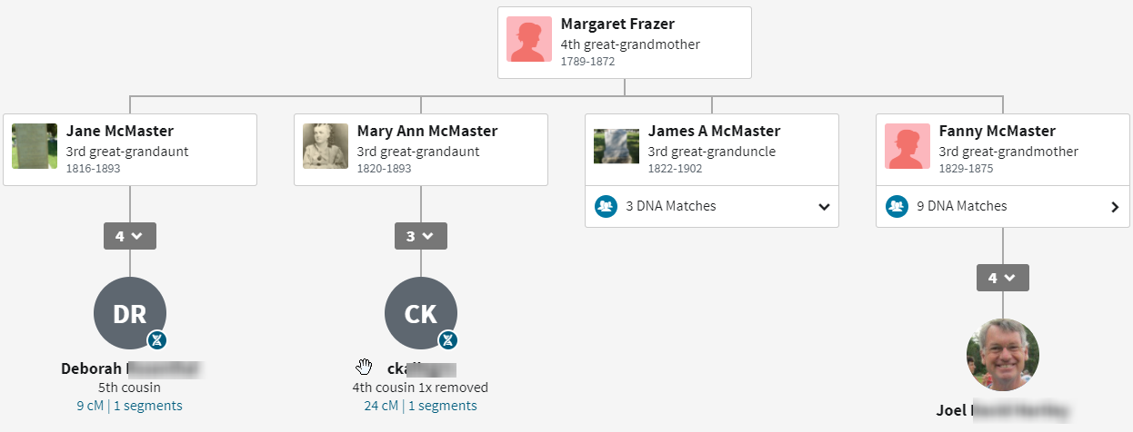 - In this Blog, I looked at some of my unexplored ThruLines on one branch of my McMaster ancestors. This branch starts with William McMaster and Margaret Frazer.