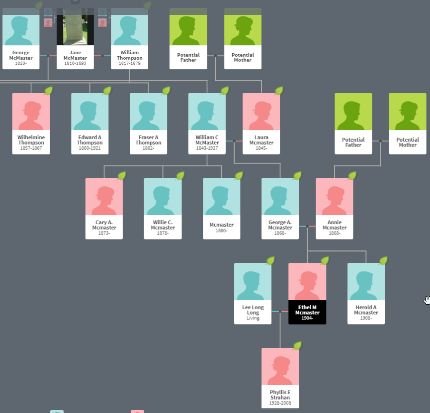 Ancestry would like me to evaluate Frank’s ancestry. This should be interesting as McMaster genealogy can be confusing. It turns out that I have already started a tree for Frank: