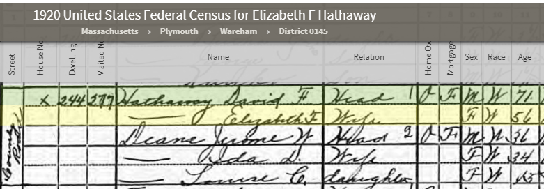 Second, I note that David M Hathaway’s mother Rebecca B Hathaway is still alive at this time. Well, this could go on forever, so I’ll stop now.