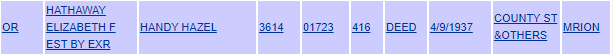 This deed refers to a deed of Elizabeth F Hathaway dated March 31, 1938. The later deeds refer to the NE portion of the First Parcel in this deed. At this point I need to look for a deed or a will for Elizabeth F Hathaway. Or the 1920 Census:
